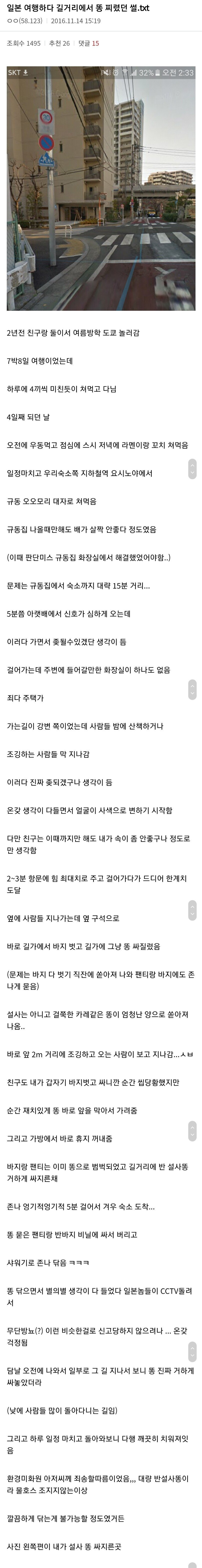 일본 여행하다 길거리에 똥 지린 ssul